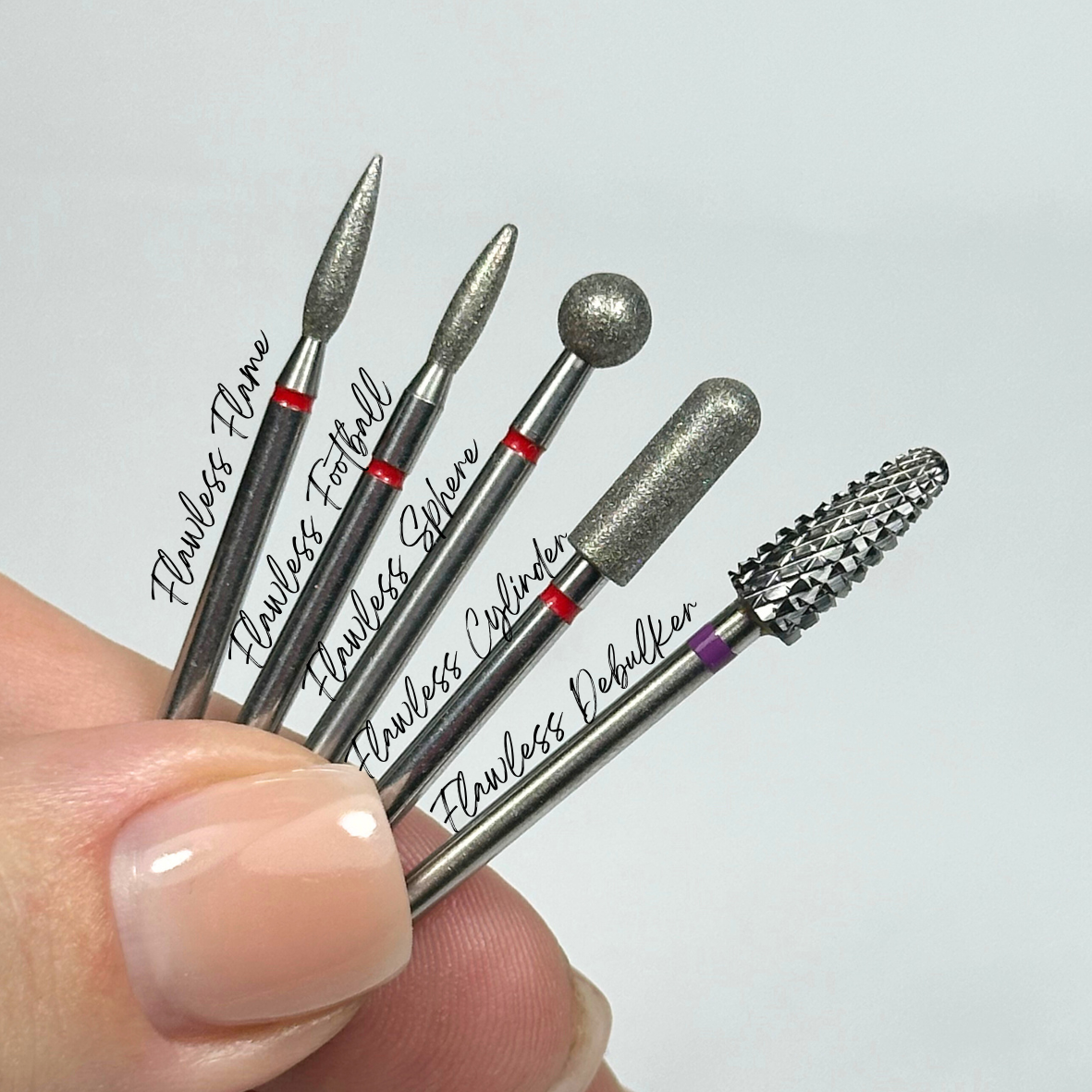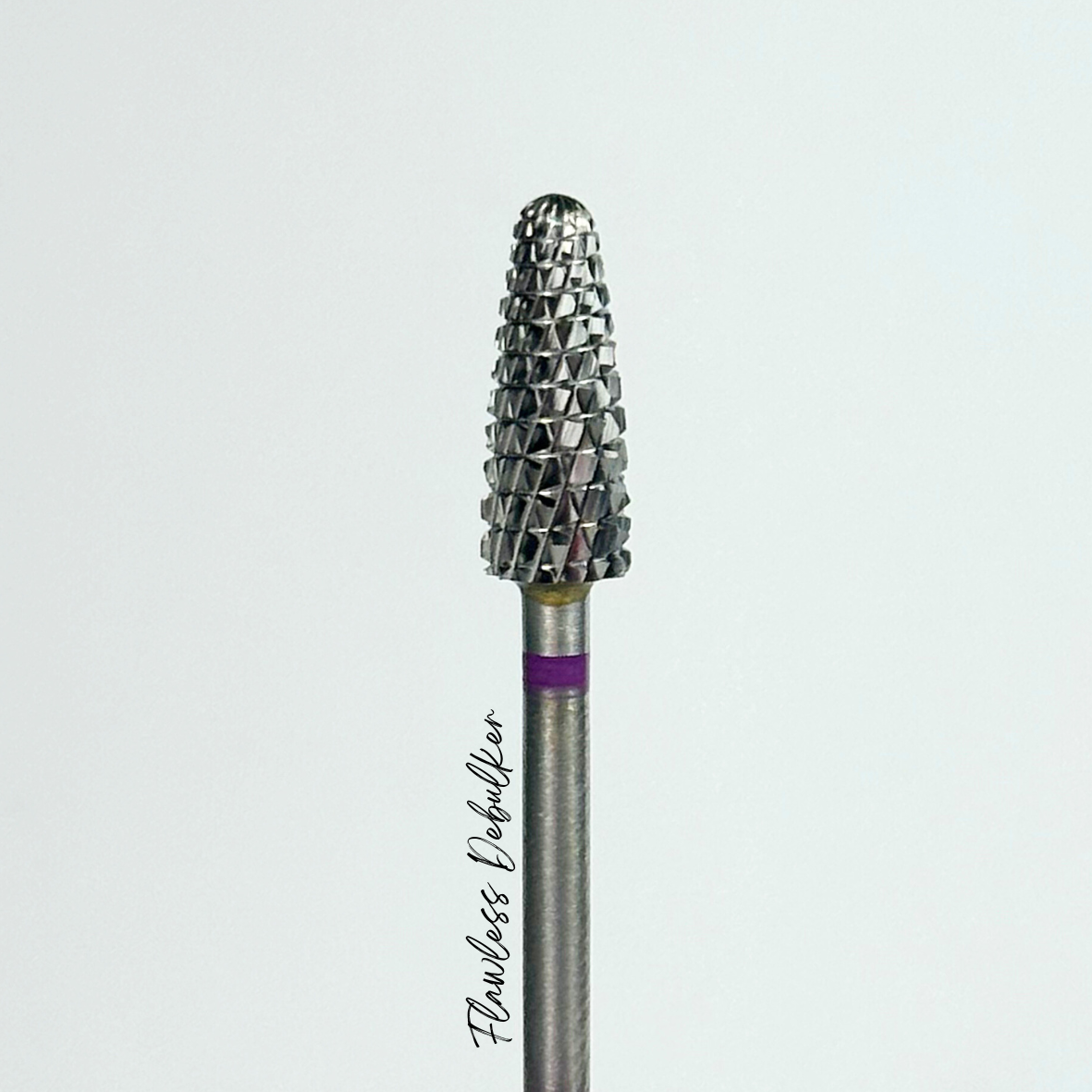 The Flawless Debulker Bit is your go-to for efficient, smooth product removal. Designed exclusively for right-handed nail techs, this bit operates in the forward direction and features a rounded safety head for comfortable, controlled filing.