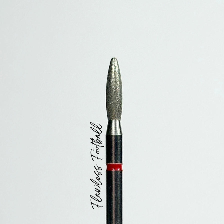Different to the flame shape, the football has a rounded nose, meaning it doesn’t work as deep underneath the cuticle. This makes it safer and easier to control, while still effectively exfoliating the skin around the nail and prepping the nail plate for flawless application.